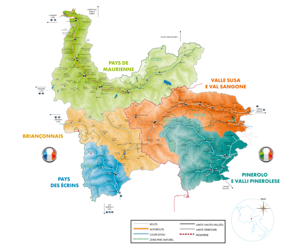 Ce territoire de montagne, malgré sa diversité, présente les mêmes caractéristiques géographiques, culturelles et économiques de part et d’autre de la frontière. Espace transfrontalier homogène à proximité de grandes agglomérations – Turin, Gap, Grenoble, Chambéry, Lyon – les Hautes Vallées sont un territoire de coopération historique pour vivre ensemble par-delà les frontières, se rapprocher et mutualiser les compétences et les idées, pour mener à bien de véritables projets de territoire, utiles à tous.
